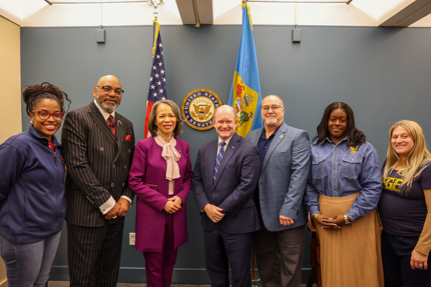 As Delaware’s former Secretary of Labor, I was proud to join Senator Coons in meeting with representatives from several unions representing federal workers. We were joined by Everett Kelley, the national president of the American Federation of Government Employees (AFGE), as well as representatives from several local unions representing workers at Dover Air Force Base, the Social Security Administration, the Veterans Benefits Administration, the Wilmington VA, and TSA.