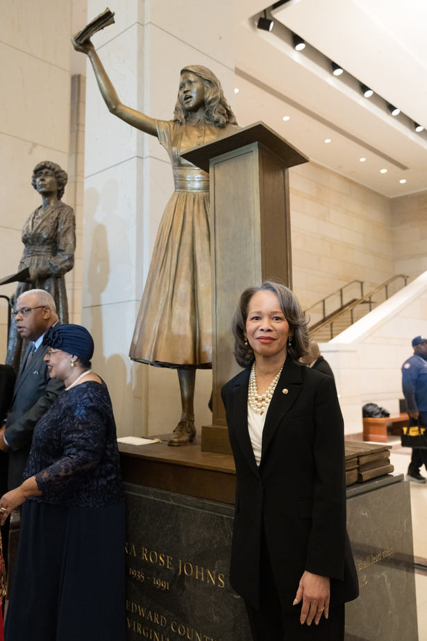 Every state gets to choose two historic figures to be depicted by statues displayed at the Capitol. Virginians chose to replace a statue of Robert E. Lee with this statue of Barbara Rose Johns – the significance of that is not lost on me. That Johns had such an impact at the age of 16 should inspire teenagers across our nation. You are never too young to make your mark on history.
